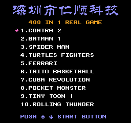 you have maybe already seen it over at CaH4e3's Blog, but i also dumped some NES roms recently. I'm very proud of, as i firstly dumped the biggest NES rom which ever existed so far, the COOLBOY 400 in 1 cartridge. This cartridge contains 400 true games and has a size of 256mbit!